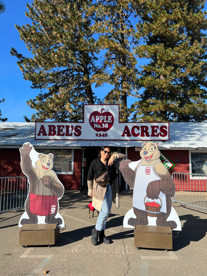 The next day, we took a short drive up to Apple Hill! For those of you who don't know what Apple Hill is, I highly recommend visiting during the fall if you're in the area. Apple Hill is basically a series of apple orchards, wineries, and other various stops where you can pick apples, buy yummy treats, shop from local craft vendors, buy fresh produce, + more! There's entertainment for the entire family and it's just so wholesome. My mom and I got caramel apples and fresh fudge... drooling just thinking about it!